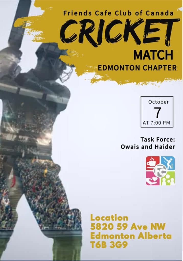 fcafeu February 26, 2024 0 comments FC Cricket Match Edmonton Chapter FC Cricket Match Edmonton Chapter by Friends Cafe Club of Canada 777 777 people viewed this event. Register for event To register for this event email your details to info@friendscafe.ca Register using webmail: Gmail / AOL / Yahoo / Outlook Date And Time 2023-10-07 @ 07:00 PM to 2023-10-07 Location - Event Types Professional Events Share With Friends Facebook Twitter Linkedin Xing Pinterest