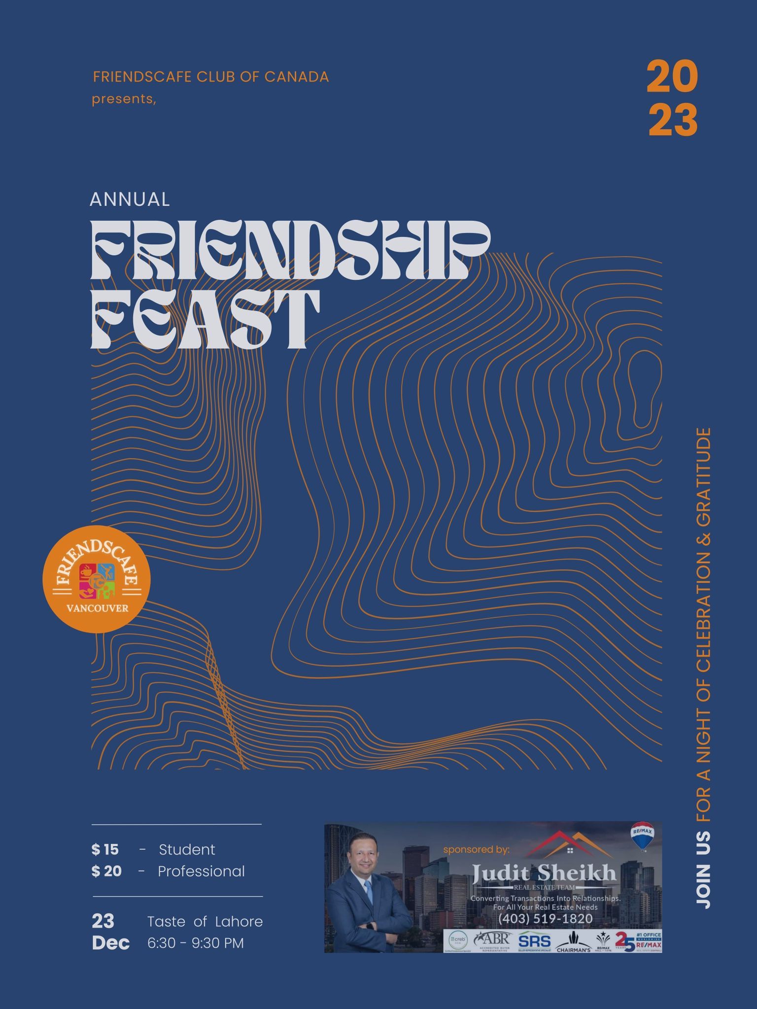 fcafeu February 26, 2024 0 comments Friendship Feast -Vancouver-Y Friendship Feast -Vancouver-Y by Friends Cafe Club of Canada 970 970 people viewed this event. Event registration closed. Date And Time 2023-11-04 @ 06:30 PM to 2023-11-04 @ 09:30 PM Registration End Date 2023-11-02 Location - Event Types Social Events Share With Friends Facebook Twitter Linkedin Xing Pinterest