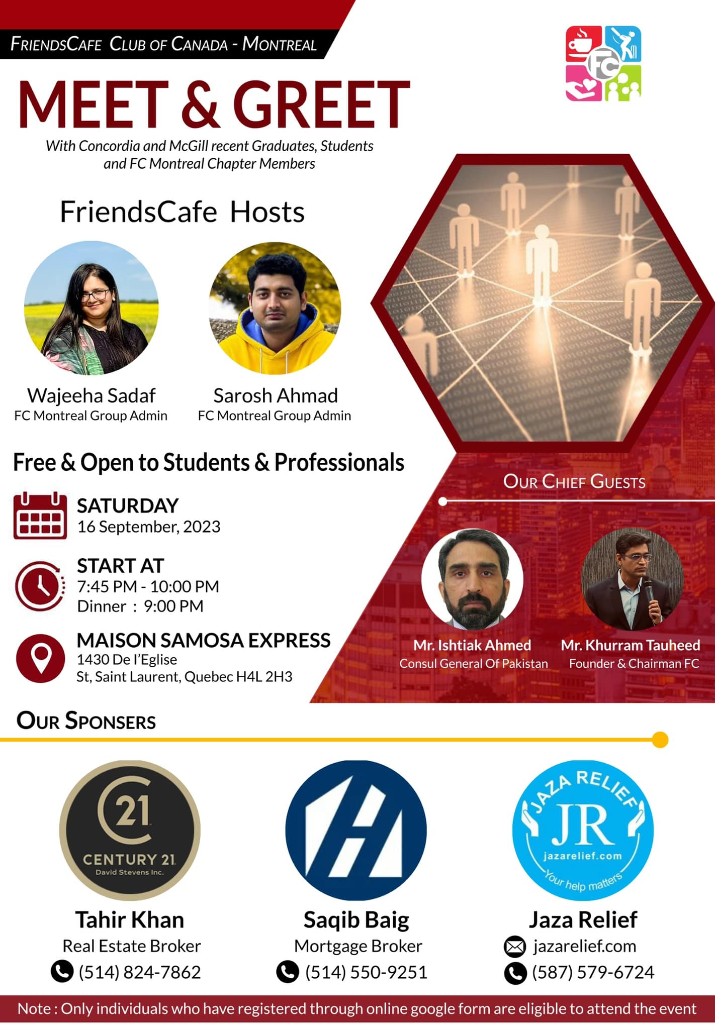 fcafeu February 26, 2024 0 comments Student Meet up Event-Montreal Student Meet up Event-Montreal by Friends Cafe Club of Canada 863 863 people viewed this event. Event registration closed. Date And Time 2023-09-16 @ 11:00 AM to 2023-09-16 @ 05:00 PM Registration End Date 2023-09-14 Location - Event Types Social Events Share With Friends Facebook Twitter Linkedin Xing Pinterest